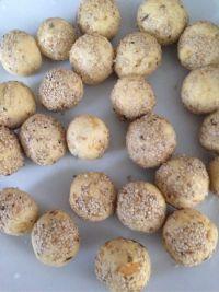 6.芝麻洗湿,把丸子放里面滚一下,粘上芝麻。