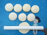 6.将面剂子搓成球,按扁,擀成中间厚边缘薄的面皮。
