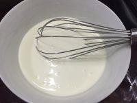 7.将凉后的蛋奶糊过筛倒入打发好的淡奶油中。