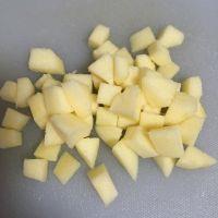 3.黄油放入锅中融化,再加入切好的苹果丁,调入少许白糖。