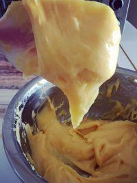 5.配方里的鸡蛋不一定全部加入,搅拌好的面糊应该细腻柔滑,提起后呈倒三角形状,且不会滴落。