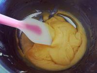 5.黄油隔水融化,倒入面糊。