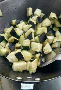1.茄子切成块放进一个大菜盆里加入淡盐水浸泡20分钟,浸泡过后挤干水分待用