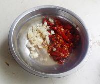 3.泡椒切碎,大蒜切成蒜茸