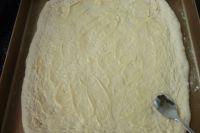 6.面团擀成大方片,用叉子扎上小孔,涂上沙拉酱